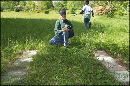 "I like to spend time with my dogs when I'm out walking. Brownie, a golden retriever and Murray, a smooth Collie are both buried here. Murray was diagnosed 2 months after me with the same head and neck cancer as mine. He liked sleeping beside me, but as I got sicker, he had a sense and really wanted to stay close to me. It's important to me to know that they're there with me." |